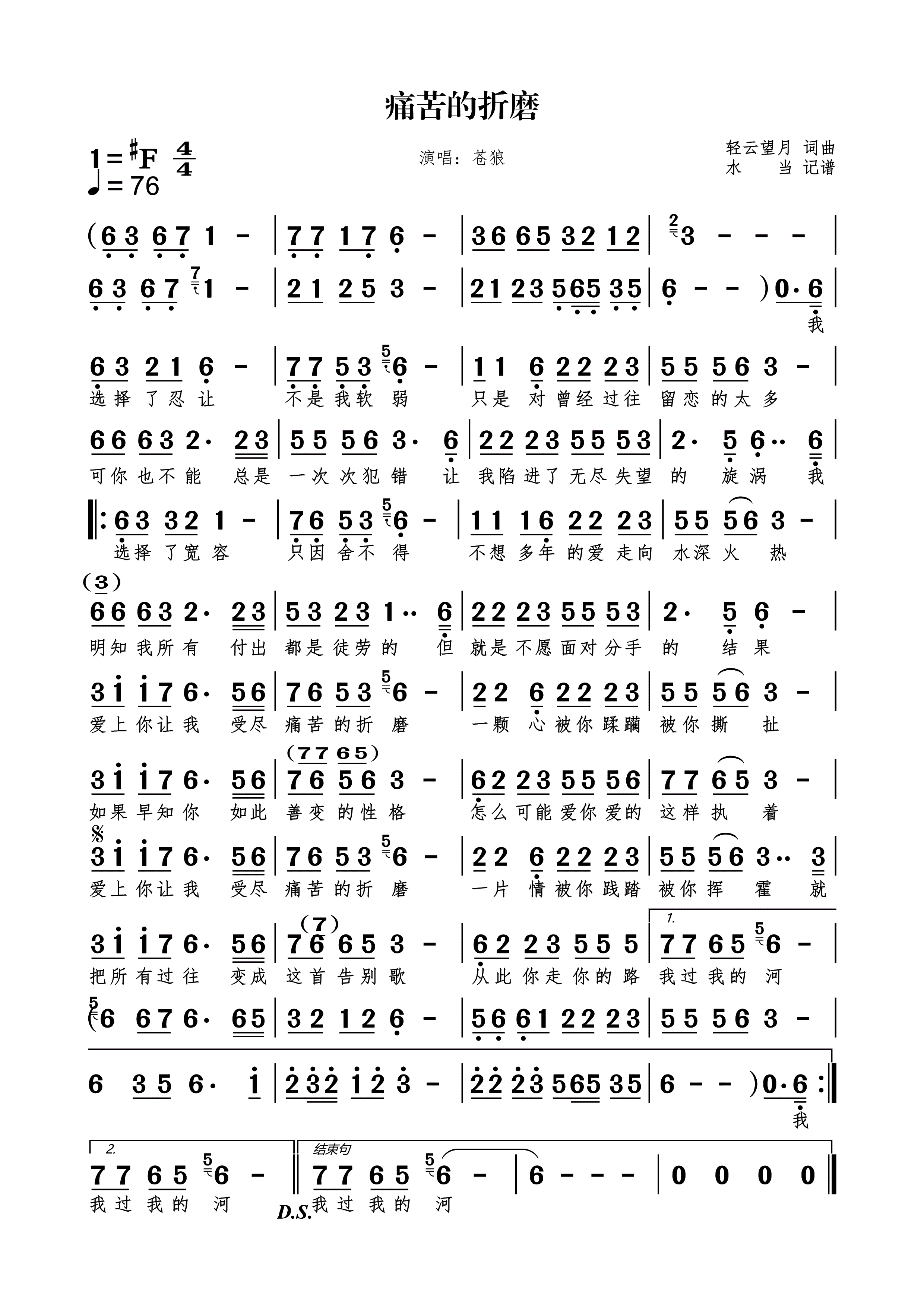 痛苦的折磨简谱下载苍狼演唱轻云望月作词作曲附歌词