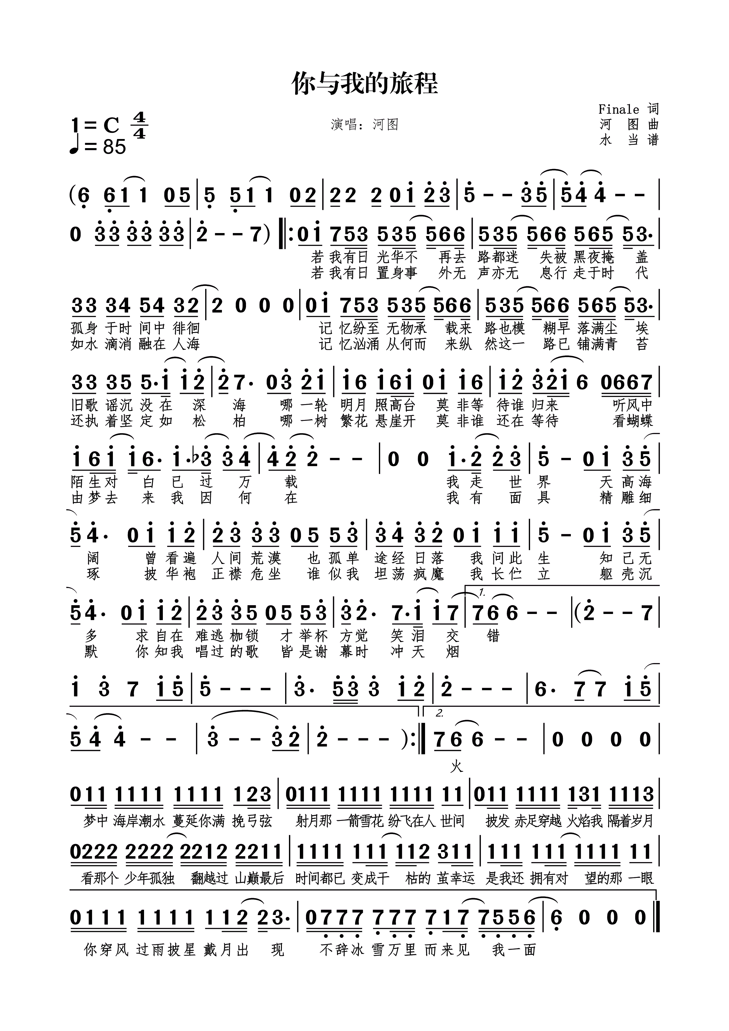 你与我的旅程简谱下载河图演唱Finale作词河图作曲附歌词