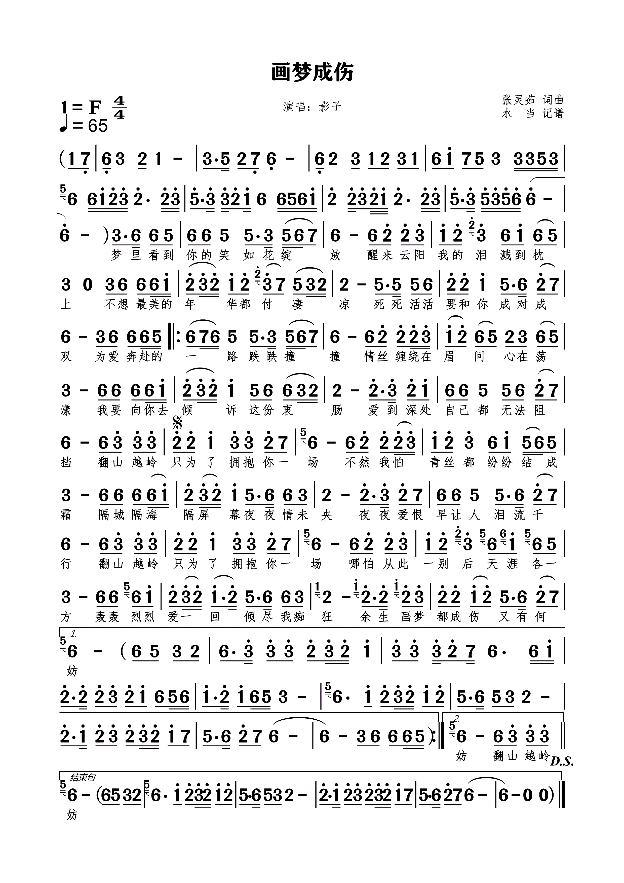 画梦成伤简谱下载影子演唱张灵茹作词作曲附歌词