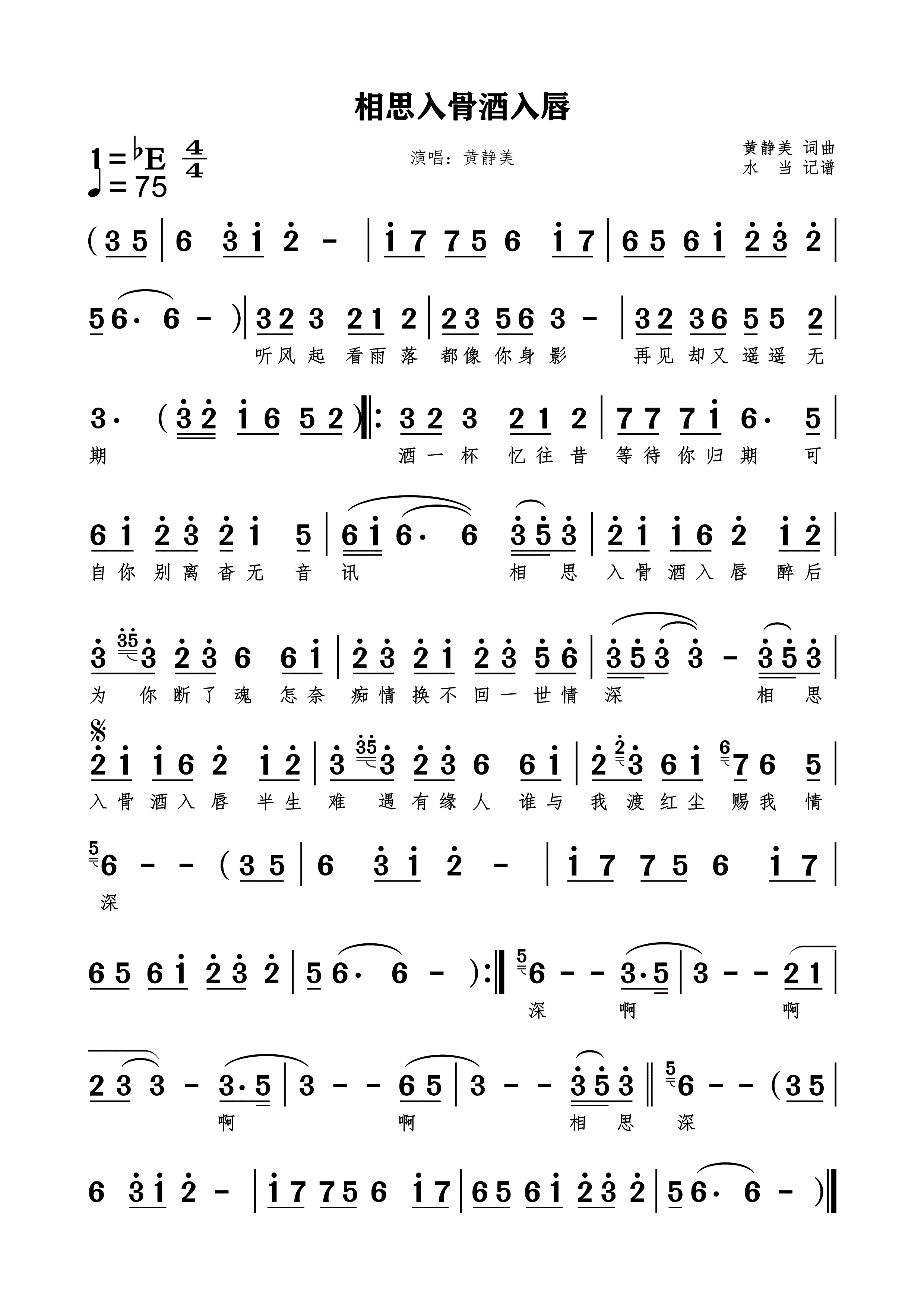 相思入骨酒入唇简谱下载黄静美演唱黄静美作词作曲附歌词